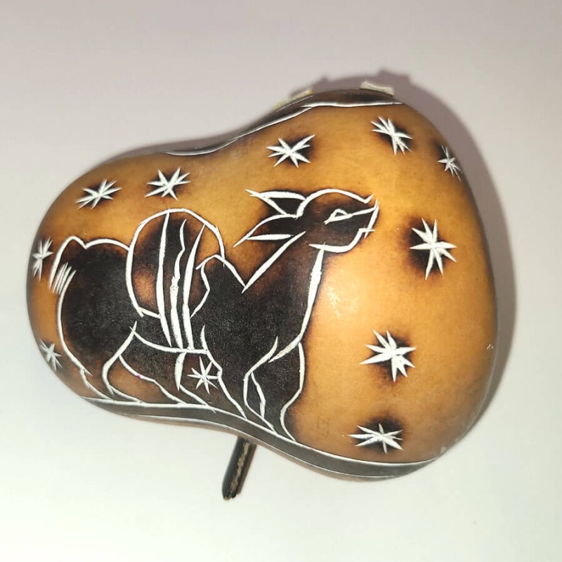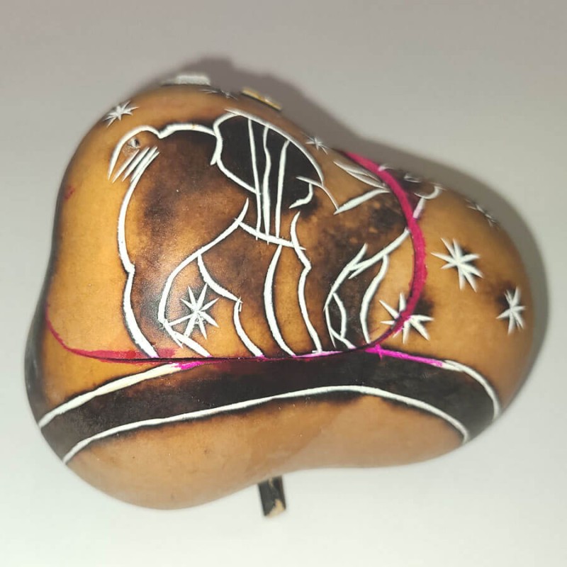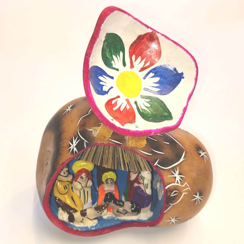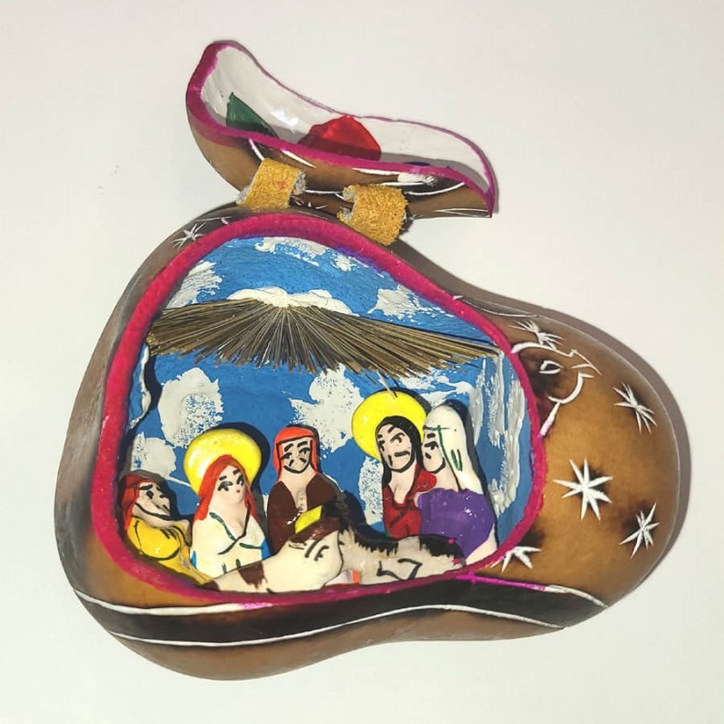 Crèche en calebasse pyrogravée, décorée main.